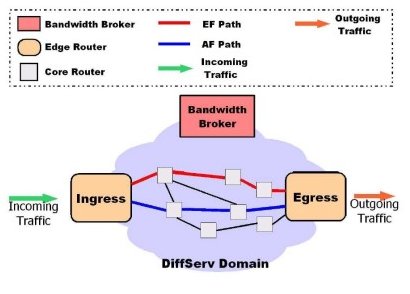 DiffServ或其他IP層網路則負責執行上層元件所規劃出來服務品質管理策略,